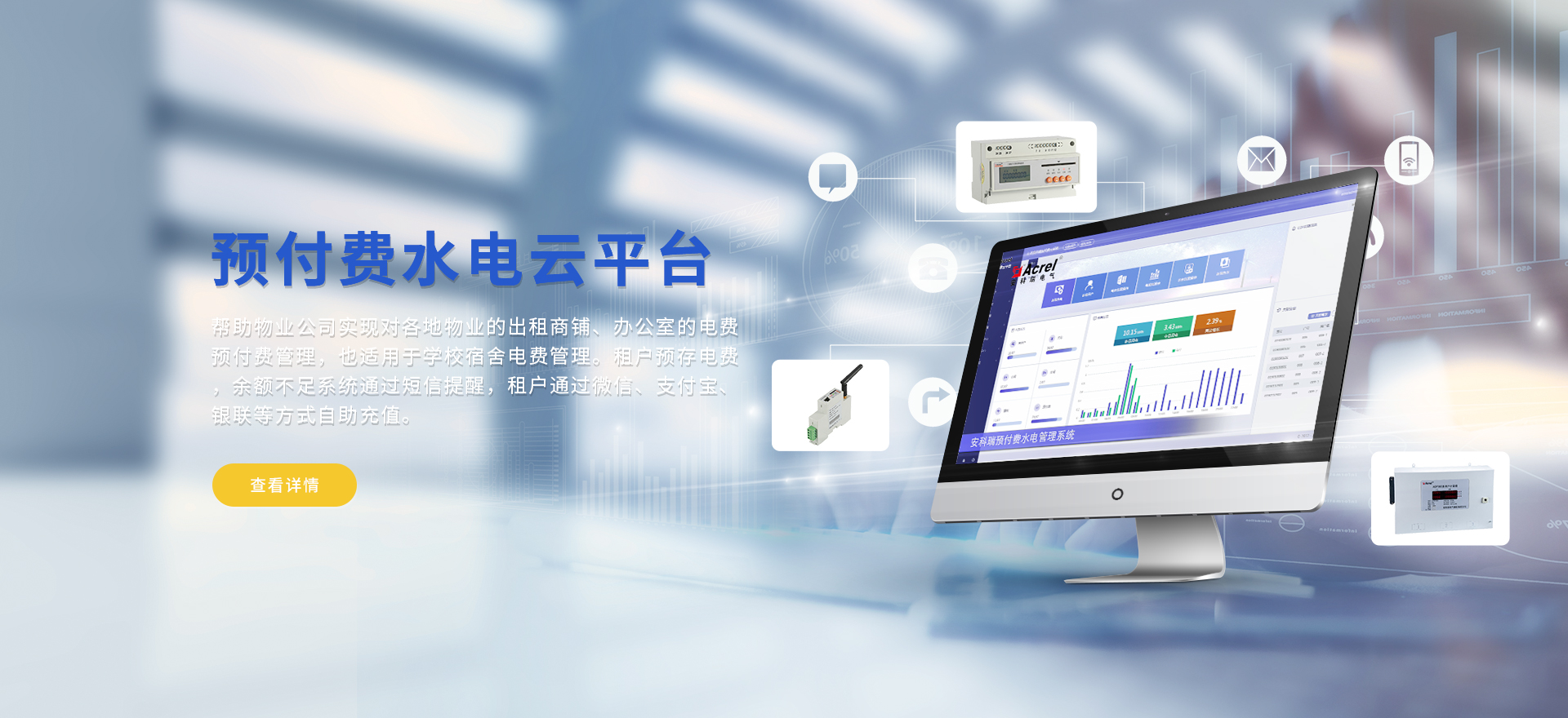 安科瑞提供的解決方案包括Acrel-EIoT能源物聯(lián)網(wǎng)云平臺、變電所運(yùn)維云平臺、安全用電管理云平臺、環(huán)保用電監(jiān)管云平臺、智慧消防云平臺、能源管理云平臺、工業(yè)企業(yè)能源管控平臺、遠(yuǎn)程預(yù)付費云平臺、餐飲油煙監(jiān)管云平臺、電動汽車/電瓶車充電樁收費管理云平臺、電力監(jiān)控/無線測溫系統(tǒng)、電能質(zhì)量治理系統(tǒng)、電氣火災(zāi)監(jiān)控系統(tǒng)、消防設(shè)備電源監(jiān)控系統(tǒng)、防火門監(jiān)控系統(tǒng)、應(yīng)急照明和疏散指示系統(tǒng)、智能照明控制系統(tǒng)、醫(yī)用隔離電源絕緣監(jiān)測系統(tǒng)等,幫助用戶實現(xiàn)能源智能化、可視化、精細(xì)化管理,提高用能效率和用能安全,為企業(yè)節(jié)能降耗和實現(xiàn)能源數(shù)字化建設(shè)提供數(shù)據(jù)服務(wù)。